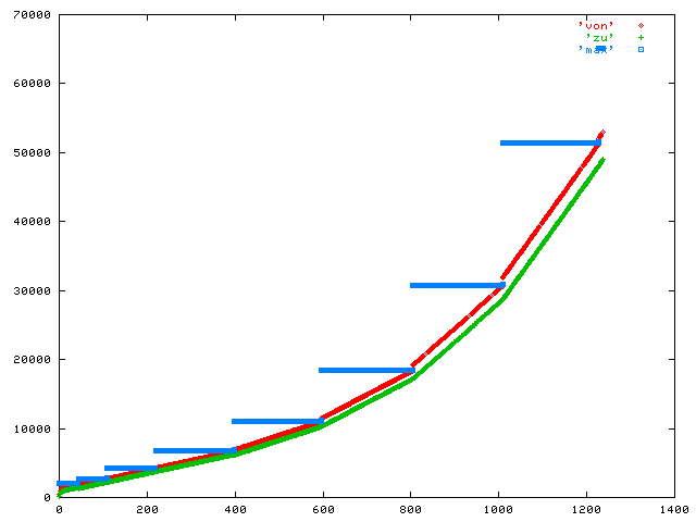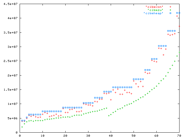 The blue curve is the Heapspace. The red is the used Memory befor and the green curve the Memory after the garbage collection.
